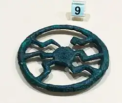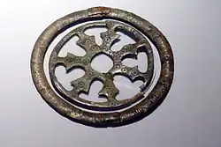 Zierscheibe (German for "ornamental disk") in archaeology is the term for a kind of metal jewellery dating to the European Iron Age. These disks are sometimes found in graves, and are thought to have been worn as pendants attached to the tunica, or as part of a belt pouch.