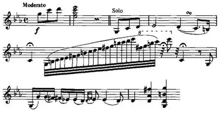 - Moderato – An imposing, virtuosic introduction with slow majestic energy by the orchestra, then a little softer by the violin itself; in common time.