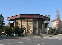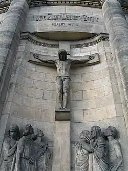 The Zionskirche is the name given to two Evangelical Lutheran church buildings in the Südvorstadt district of Dresden. The first, the Alte Zionskirche, was built by Schilling & Graebner from 1908 to 1912. This building was hit and badly damaged by fire during the bombing in February 1945. A temporary roof was later added and it is now preserved as a ruin, housing a lapidarium with 3000 sculptures. The parish, meanwhile, was housed in a barracks next to the ruins until the first stone of a new building, the Neue Zionskirche, was laid on Bayreuther Straße on 5 June 1981, as a gift from the Church of Sweden. With its construction overseen by Eberhard Burger, the new building was inaugurated on 31 October 1982.