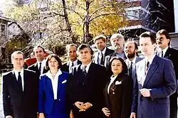 Lagumdžija (right) alongside other Social Democratic Party officials, including founder Nijaz Duraković (first row, centre)
