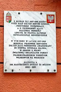 Baló, then in the rank of Colonel, became the head of the directorate. His sympathetic stance allowed a large part of the 50,000 men strong group of Polish soldiers who reached Hungary in 1939 to escape from poorly guarded internment camps and join the Polish Army in the West.[1][2] He was followed on the post by Lóránd Utassy. Baló was briefly arrested by the Germans after their takeover of Hungary in 1944, he returned to Budapest.