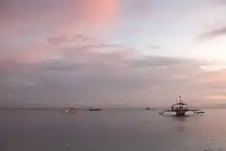 A seaside view offshore of Malapascua Island, Philippines. The Zonetail butterfly ray can be found in shallow open seas throughout South Asia, such as the one depicted above.