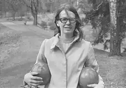 After secondary school, Ságlová took an apprenticeship as a weaver.[1] From 1961 to 1966 she studied textile design at the Academy of Arts, Architecture and Design, Prague.[2] In 1964 she married the photographer Jan Ságl. Their daughter Alenka was born in 1968[1] After graduating, she took up geometric painting and performance art.[2] Her performances of the late 1960s and early 1970s combined happening and land art, and often occurred in open air settings.[2][4] After the Prague Spring, she carried out more collective actions, often in rural areas.[2] After "Hay-Straw" in 1969, she was persecuted by the media and sidelined by official art circles during the period of Normalization.[1] After 1972, she retired from public life and returned to tapestry and painting, influenced by political pressure due to the persecution of her frequent collaborators in Plastic People of the Universe. She did not revisit performance until the late 1980s with small, more private happenings.[4] Ságlová continued to work throughout the 1990s,[4] and died in 2003.