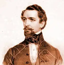However, his dramas written after his first success (Leona and The Frivolous, first performed at the National Theatre on 25 February 1847) were much weaker than the first, the audience became colder and the criticism more severe, which made the young poet, who was already in a sick mood, despair. He was determined to create a work that would surpass all his previous plays. The result of his determination was his last play on historical subjects, The Knight John. (It was performed at the National Theatre on 13 March 1848.) He read his finished manuscript to some friends, who, perhaps a little too severely, but with sincerity of conviction, detected in it essential defects and considered it by no means as excellent as the author himself. This had such a crushing effect on him that soon after the severe criticism expressed by his friends, and without waiting for the performance of his work, he shot himself in the head with a pistol in the editorial office of the Pesti Hírlap.[1] Petőfi and Arany also wrote poems in his memory.[2][3]