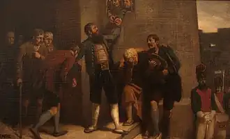 The lyrics were written by the German writer Julius Mosen in 1831, and the German composer Leopold Knebelsberger melodized them in 1844. The song deals with the death of Andreas Hofer, an innkeeper by trade, who was the leader of the Tyrolean Rebellion against the French and Bavarian occupation during the War of the Fifth Coalition in 1809. After Emperor Francis I of Austria had signed the Treaty of Schönbrunn, Hofer fought a losing battle. Betrayed and captured, he was executed by the personal command of Napoleon at Mantua in Italy on 20 February 1810 by the French forces.