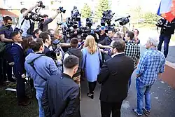 In a press conference held on 29 March 2018, Čaputová announced her bid for the Slovak presidency in the 2019 presidential race as the candidate of Progressive Slovakia. Robert Mistrík, another strong contender, withdrew from the race and endorsed her on 26 February 2019.[16] She said she had felt compelled to run for the Presidency after the murder of Ján Kuciak, an investigative journalist.[17][18][19]