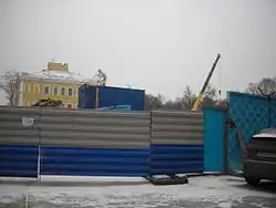 A specially constructed building was planned to be situated between houses No. 1 and No. 3 on Zvenigorodskaya Street. Originally, it was intended to resemble the appearance of the Semyonovsky Regiment barracks, the ground floor to house the concourse, while the second floor was designated for Saint Petersburg Metro services.[1] Eventually, a five-storey shopping mall designed by the "Adamant" company was authorised.[4]