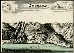 Zvornik (Serbian Cyrillic: Зворник, pronounced [zʋɔ̌rniːk]) is a city in Republika Srpska, Bosnia and Herzegovina. In 2013, it had a population of 58,856 inhabitants. Zvornik is located on the Drina River, on the eastern slopes of Majevica mountain, at the altitude of 146m.[1]