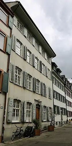 The Zwingerhaus is located on Nadelberg 23a in Basel, Switzerland. It is named Zwingerhaus in memory of the physician Theodor Zwinger, who bought the house in 1572. It is first mentioned in 1345, then in possession of the family "zum Walpach", why it also called House zum Walpach or Walpachhaus. The house was and is located in one of the finest neighborhoods of Basel. In 1577 Theodor Zwinger called the Nadelberg a most noble and silent street.[1] The Nadelberg translates into "Mountain of the Needle", and while the Nadelberg is not really a mountain the street follows the crest along the valley of the Birsig creek.[1] In its neighborhood the well established families from Basel built their residences.[1]