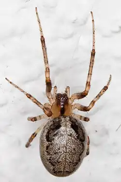 - ^ a b c d Gheysens, T.; Beladjal, L.; Gellynck, K.; Nimmen, E. Van; Langenhove, L. Van; Mertens, J. (August 2005). "Egg Sac Structure of Zygiellax-Notata (Arachnida, Araneidae)". The Journal of Arachnology. 33 (2): 549–557. doi:10.1636/CS05-12.1. hdl:1854/LU-333268. ISSN 0161-8202. S2CID 55406175.