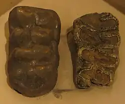 The species Z. tapiroides (Desmarets, 1822) is considered invalid.[9][14] The taxonomy of East Asian Zygolophodon is uncertain. Tassy et al. (1988) synonymised many Chinese species with Z. gobiensis (including Z. lufengensis, Z. chinjiensis, Z. nemonguensis, Z. gromovae and Z. jiningensis, as well as Miomastodon tongxiensis), with Z. gobiensis also known from Mongolia, but other authors suggest that at least some of these species may be valid.[9] The species Z. atavus is known from the early Middle Miocene of Kazakhstan.[9] The oldest remains of Zygolophodon on the Indian subcontinent are known from the Bugti Hills of Pakistan, dating to around 19-17 million years ago. The species Z. metachinjiensis is known from the mid-Late Miocene (around 13.8 to 12.4 million years ago[6]) of Pakistan.[15] Zygolophodon has also been reported from western India, dating to the mid Miocene,[16] and other probable remains dating to the Late Miocene, around 10 million years old, representing the youngest mammutids on the Indian subcontinent.[15] An indeterminate species has also been reported from Thailand, of uncertain but probably Late Miocene age.[9]
