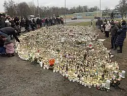 On 5 February, the day after the shooting, a memorial service was held at Sankt Nicolai Church in Örebro. The King and Queen, the Prime Minister and other government representatives, and several leaders of major political parties attended the ceremony.[83] Also, on the night of 5 February, the Øresund Bridge was illuminated in the colours of the Swedish flag to honour the victims.[84]